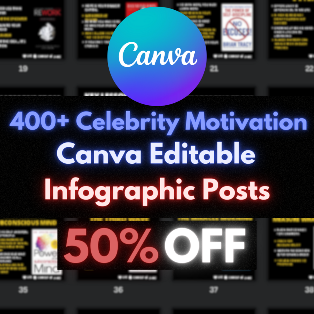 400+ Celebrity Motivation Editable Canva Infographics + BONUS